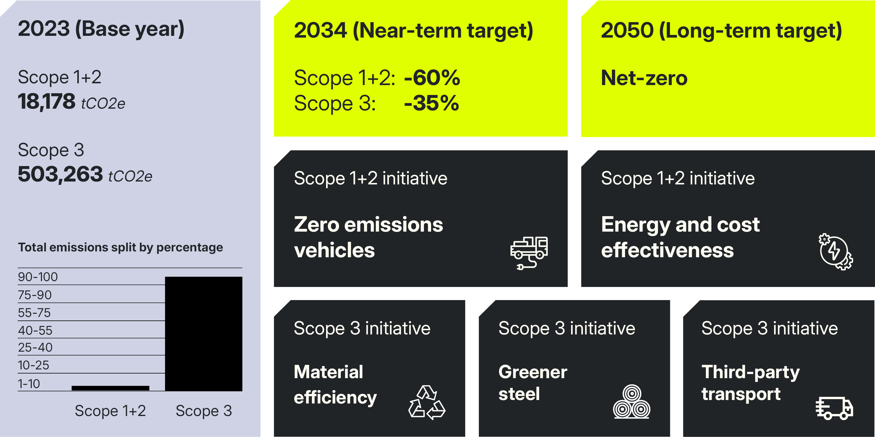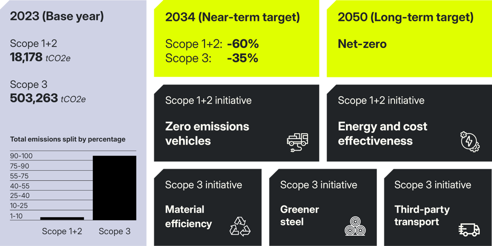 - Grønnere stål: indkøb og anvendelse af grønnere stål for at reducere vores materialers CO2-aftryk
