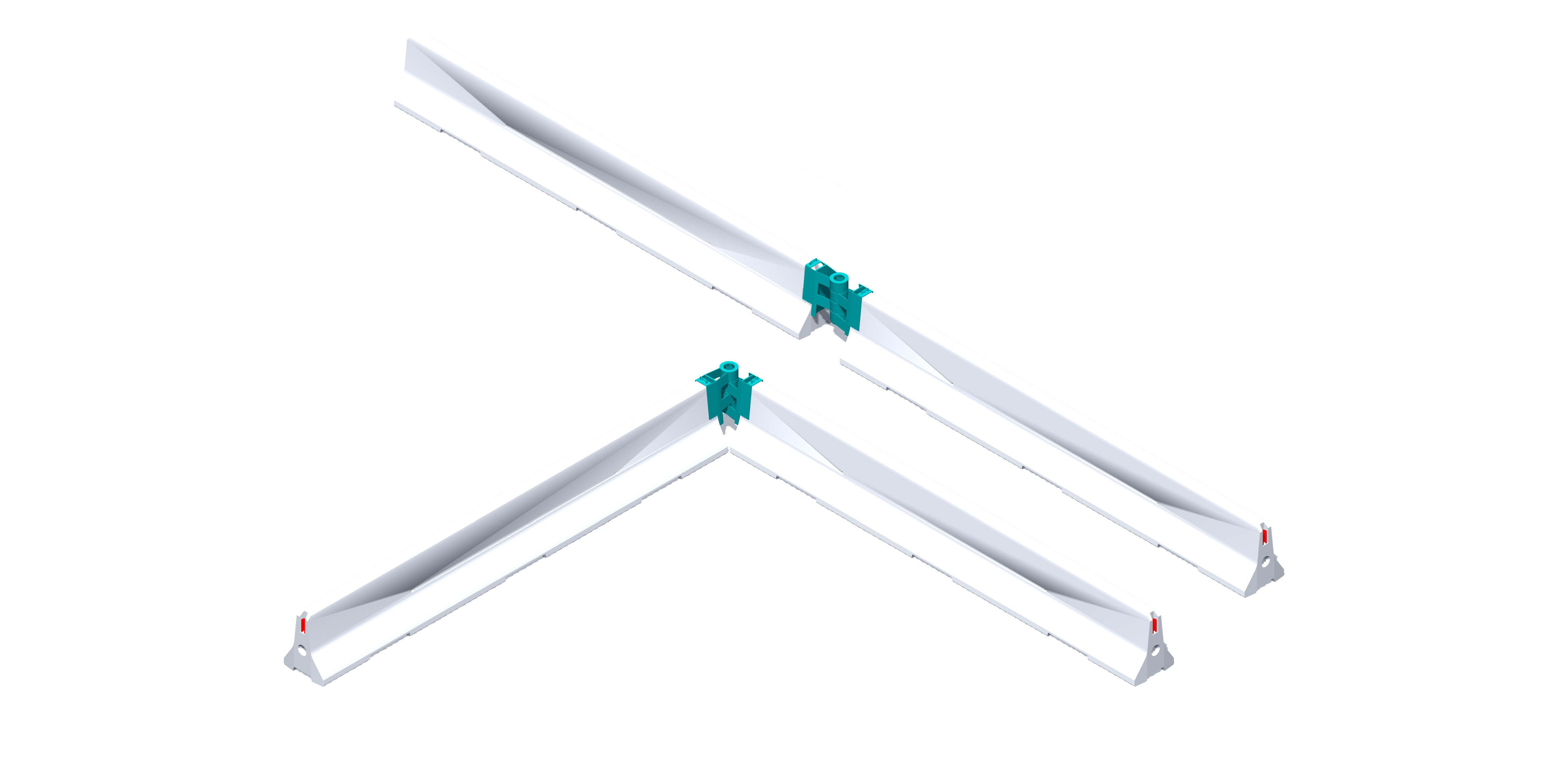 FlexCorner er en tredelt løsning, som består af to kapper og et koblingsrør. Koblingen er solid og stabil og gør det muligt at dreje og skabe hjørner, når du forbinder dine betonbarrierer.