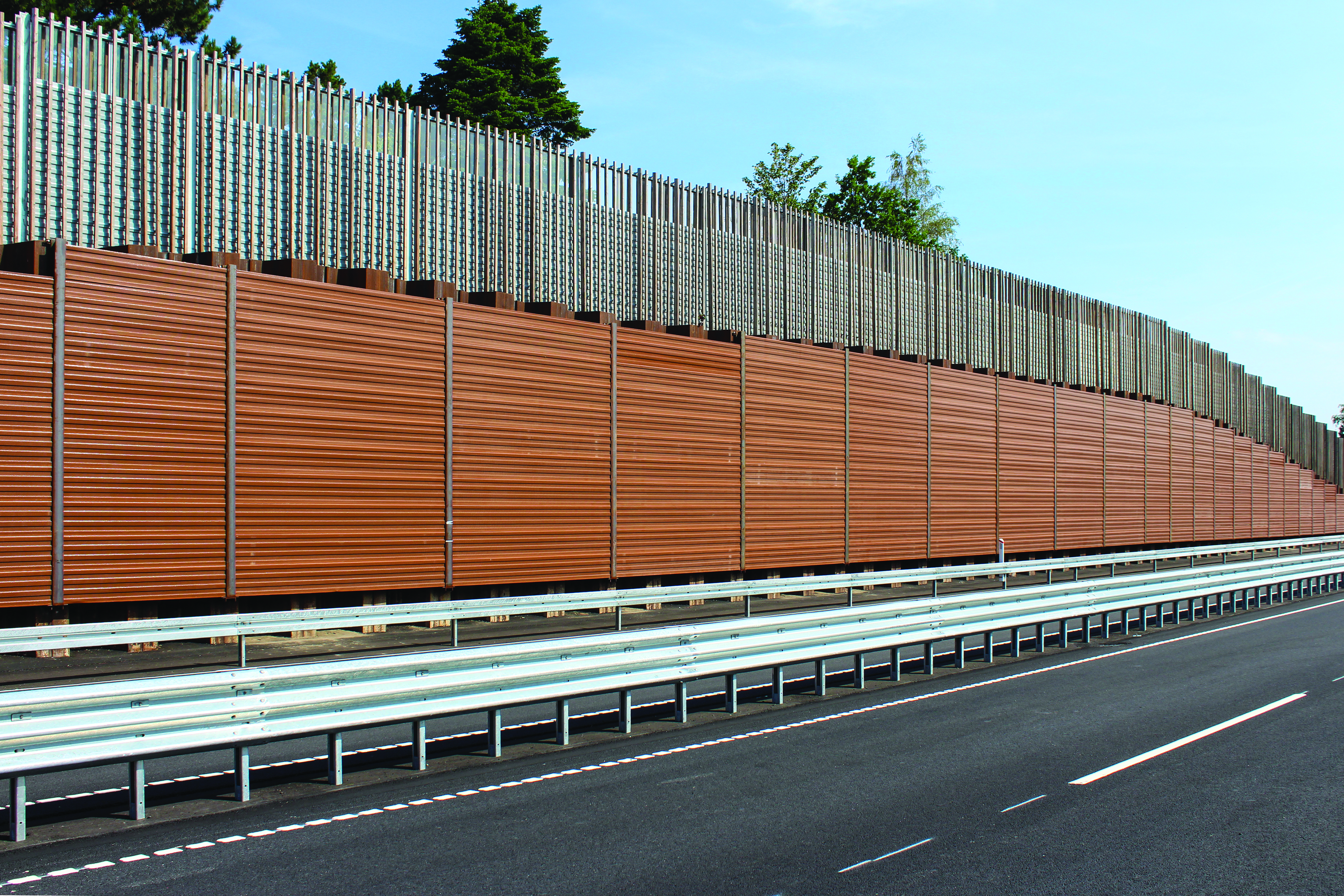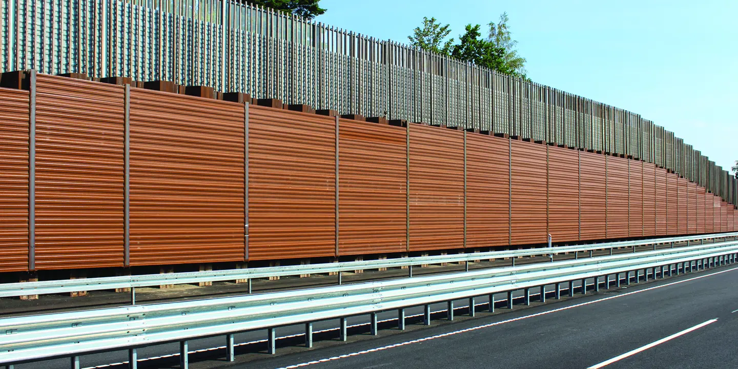 Hvis man ønsker at skærme et støjfølsomt område fra støj på et sted, hvor der ikke er et støjfølsomt område på den modsatte side af støjkilden, kan det være en fordel at vælge en reflekterende skærm.En reflekterende skærm har en solid overflade, der kaster støjen i den modsatte retning af den, støjen kommer fra. Derfor kan en reflekterende støjskærm være et godt valg, hvis der ikke er støjfølsomme områder i den retning, hvor støjen kastes. Reflekterende støjskærme anvendes ofte i forbindelse med store veje som motorveje og jernbaner. |