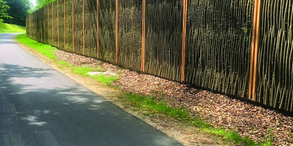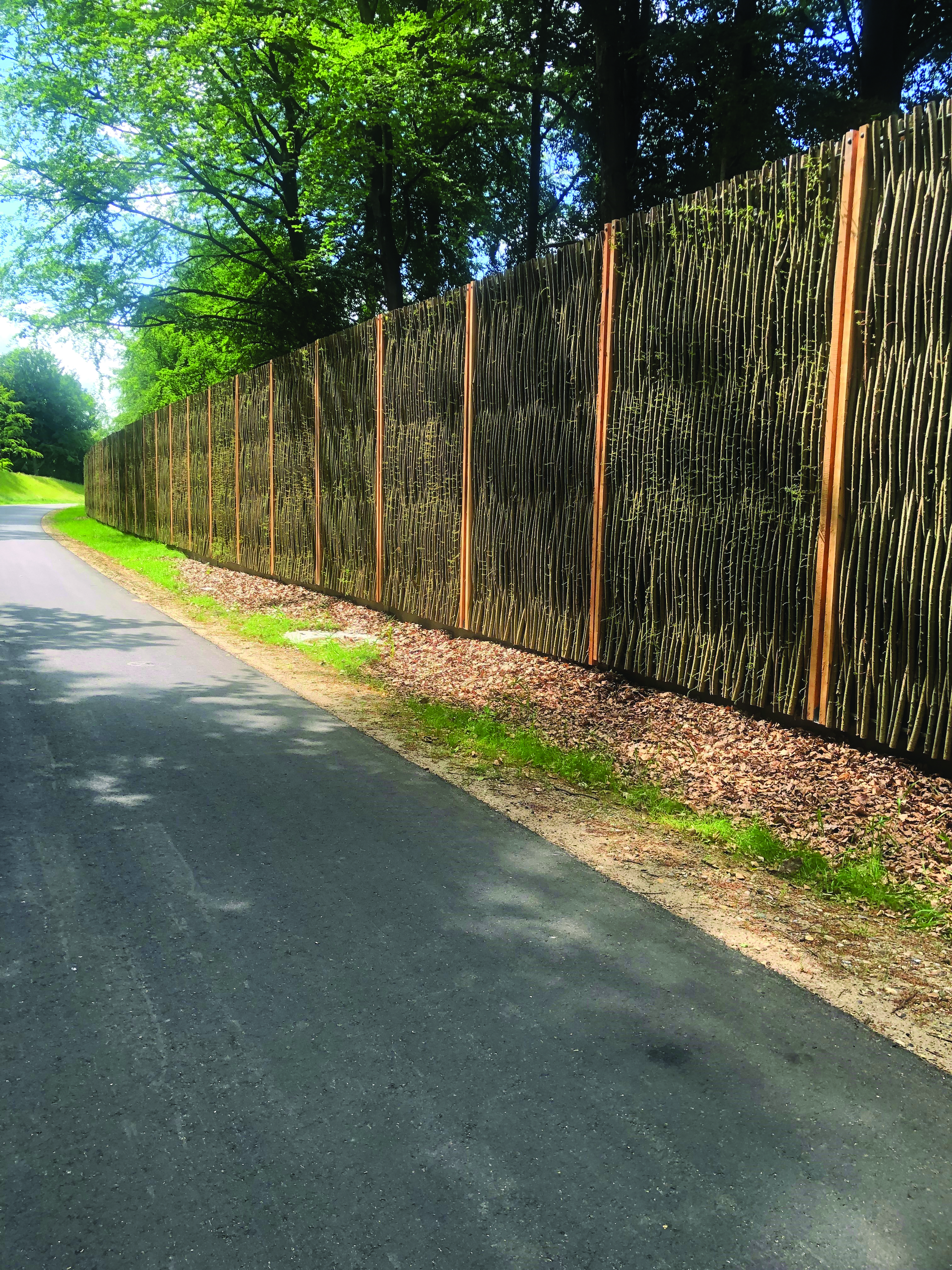 En enkelt absorberende støjskærm er ideel, hvis man ønsker at skærme et boligområde, der ligger ud til en stærkt trafikeret vej. En enkelt absorberende støjskærm er ideel, hvis man ønsker at skærme et boligområde, der ligger ud til en stærkt trafikeret vej. |